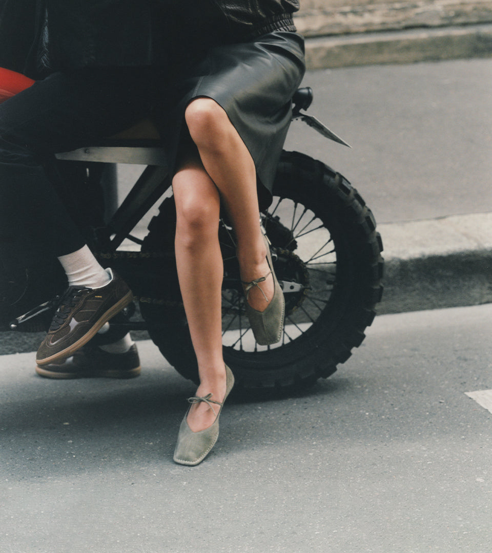 Sway Suede Khaki Leather Ballet Flats