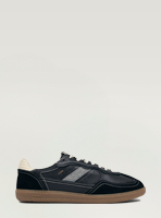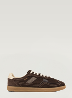 La zapatilla Tb.490 está elaborada en tonos blancos con texturas combinadas: ante en la punta y en la parte trasera, y cuero en el centro. Los detalles en azul marino contrastan y aportan definición, mientras que los cordones jaspeados en tonos a juego completan el diseño. Con un silueta de caña baja, se asienta sobre suelas de goma y presenta detalles clásicos como costuras visibles y un logo grabado en la lengüeta y los laterales.