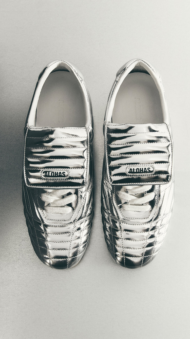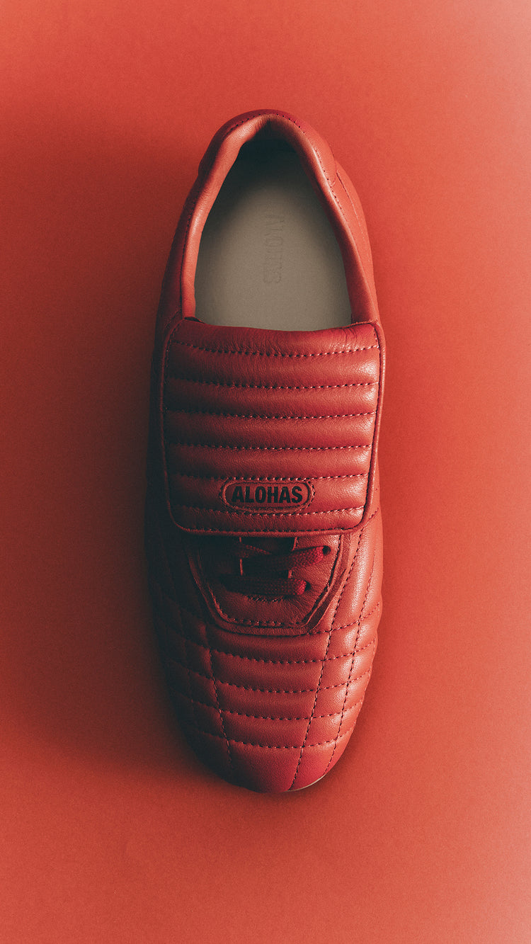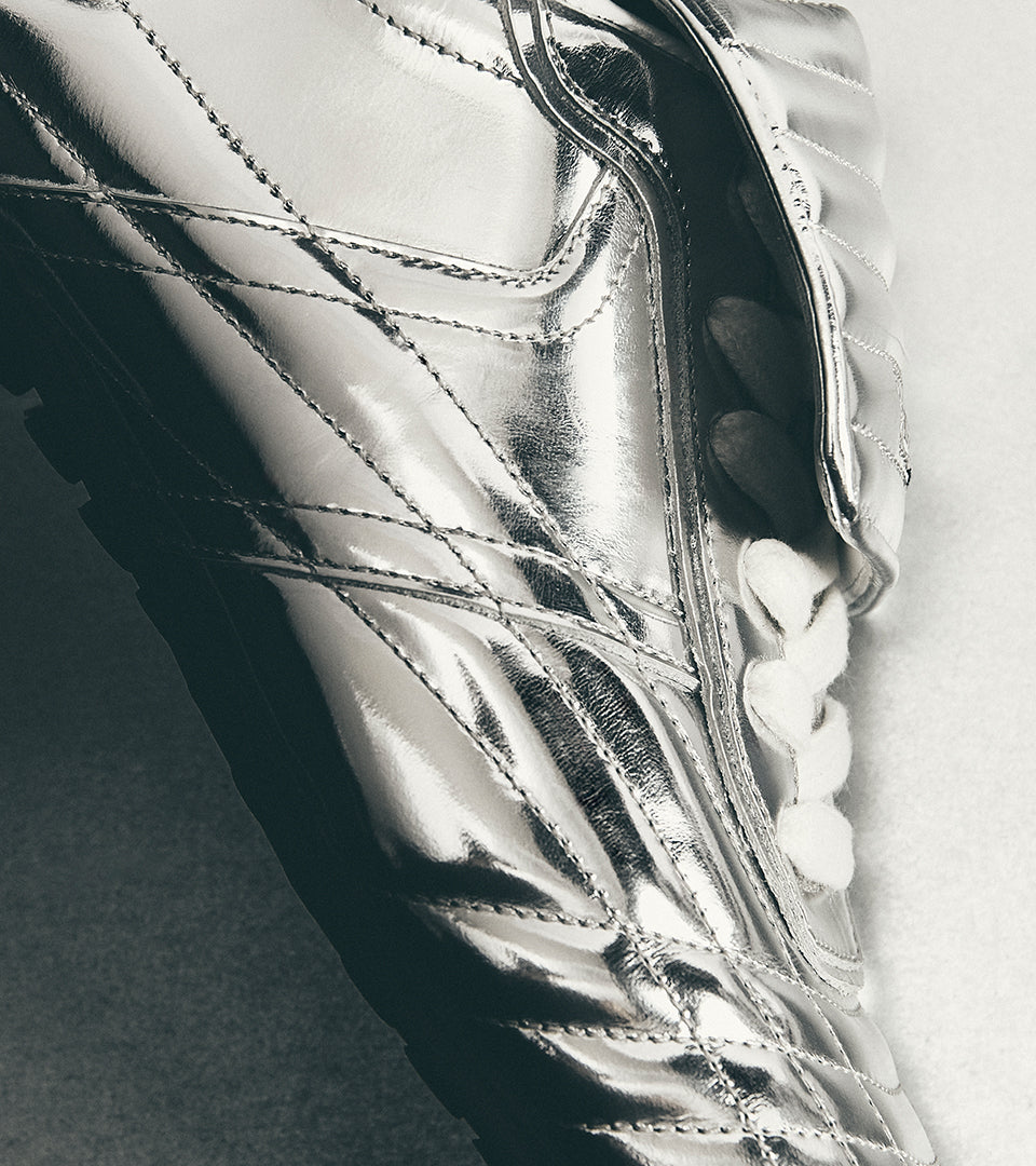 Football? Looks like it. But no. Meet the new Tb.99 — padded silhouette, oversized tongue, and studs. Now available in three colors, up to size 46.