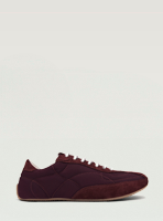 Le sneaker Tb.25 offrono una prospettiva più morbida per le calzature quotidiane. In un profondo tono bordeaux, questo paio combina dettagli in suede con pannelli in nylon leggero, bilanciati da lacci a contrasto e una suola in gomma a profilo basso. Completate da dettagli di cucitura espressivi, vengono fornite con due set di lacci, uno bianco e uno blu, per un look asimmetrico se lo desideri. Tendono a rimanere indossate più a lungo del previsto.