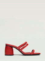 The Indiana are backless open-toe sandals defined by clean lines and a structured, balanced silhouette. Crafted in red leather with a subtle wrinkled effect, the design is set on a sturdy block heel and features slim straps that frame the foot with precision. Clean, graphic and quietly assertive in shape.